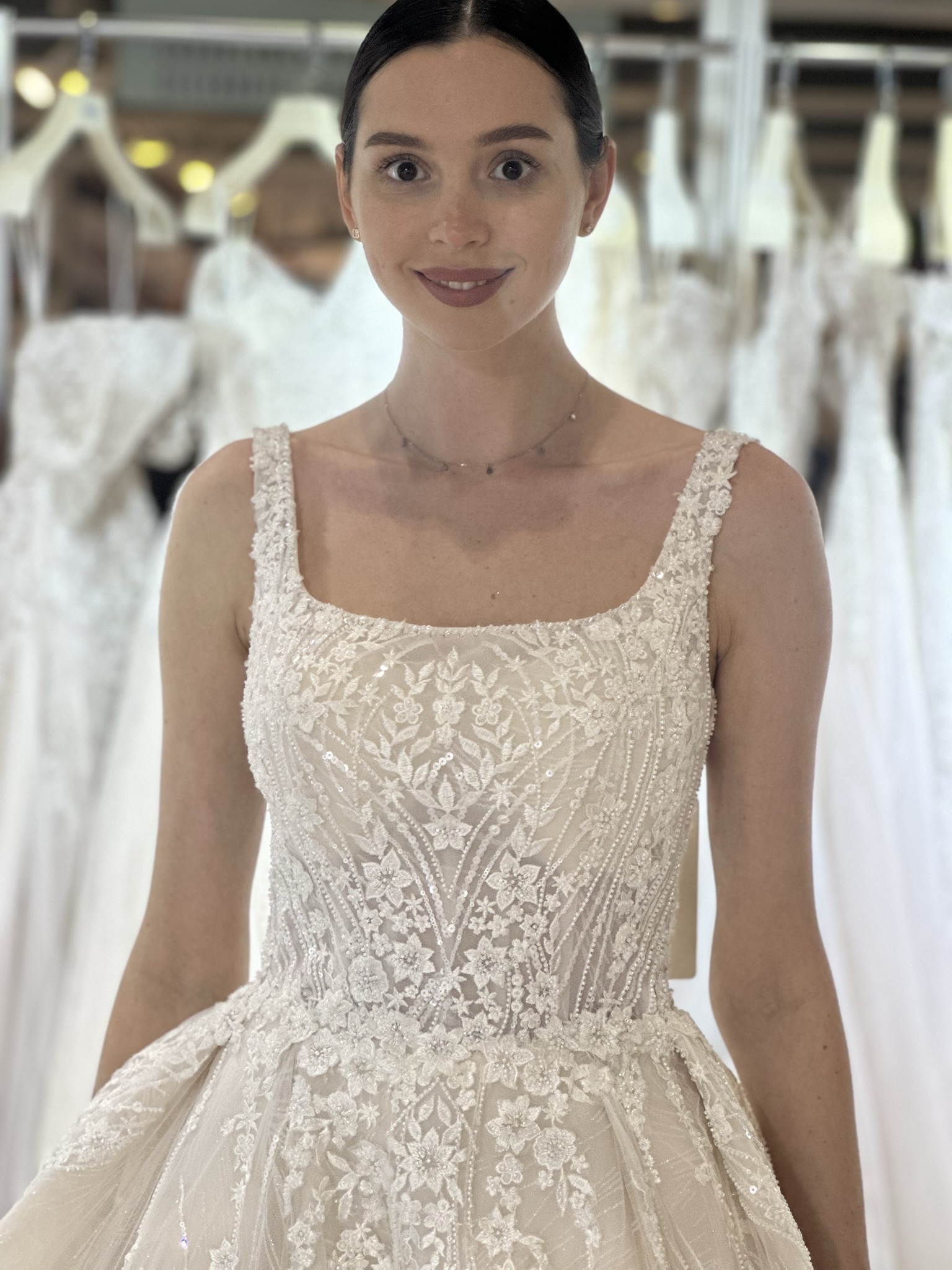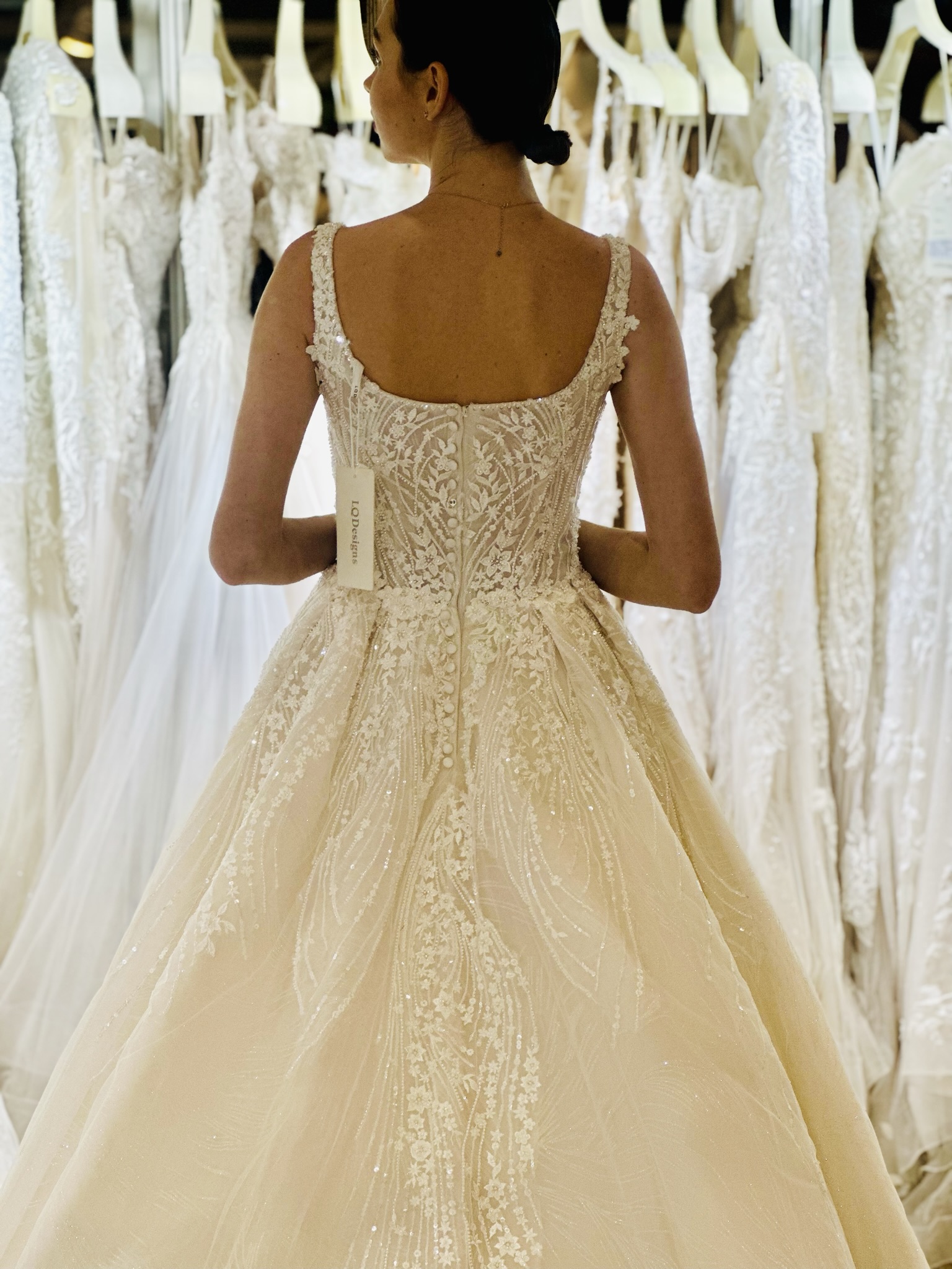 In stock as pictured Ivory/Blush in size UK 14. £1,800. Also available in all Ivory.